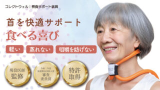 - 頭部の重みをコレクトウェルに支えてもらえるので、食事中に疲れることが無くなり、短時間で完食できるようになりました。