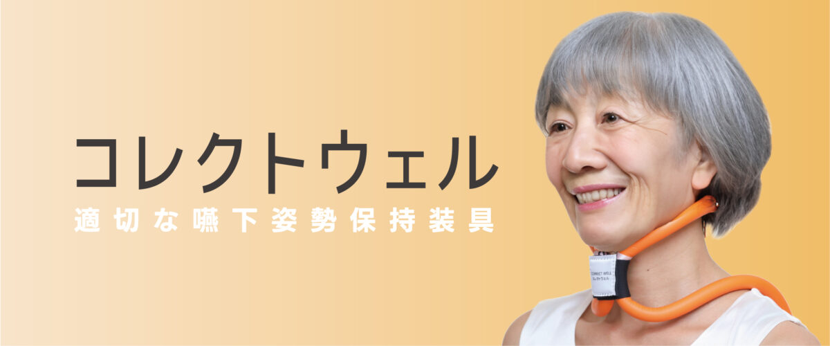 コレクトウェルはリハビリテーション医が「頸部前屈位を保持するため」に考案した嚥下障害者用の装具です。